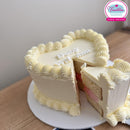 A sweet and elegant way to celebrate a new arrival! This heart-shaped vanilla cake is beautifully frosted with smooth buttercream and delicate piped borders, creating a timeless and classy look. The soft pink filling adds a lovely surprise when sliced — perfect for gender reveals or baby showers.