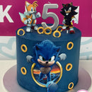 This action-packed Sonic-themed cake is perfect for any little speedster’s special day! Featuring Sonic, Tails, and Shadow, this vibrant blue cake is decorated with golden rings and topped with a bold number candle — a true celebration of energy and adventure.